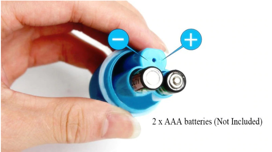 ใช้ถ่านอัลคาไลน์ ขนาด AAA = 3 ก้อน